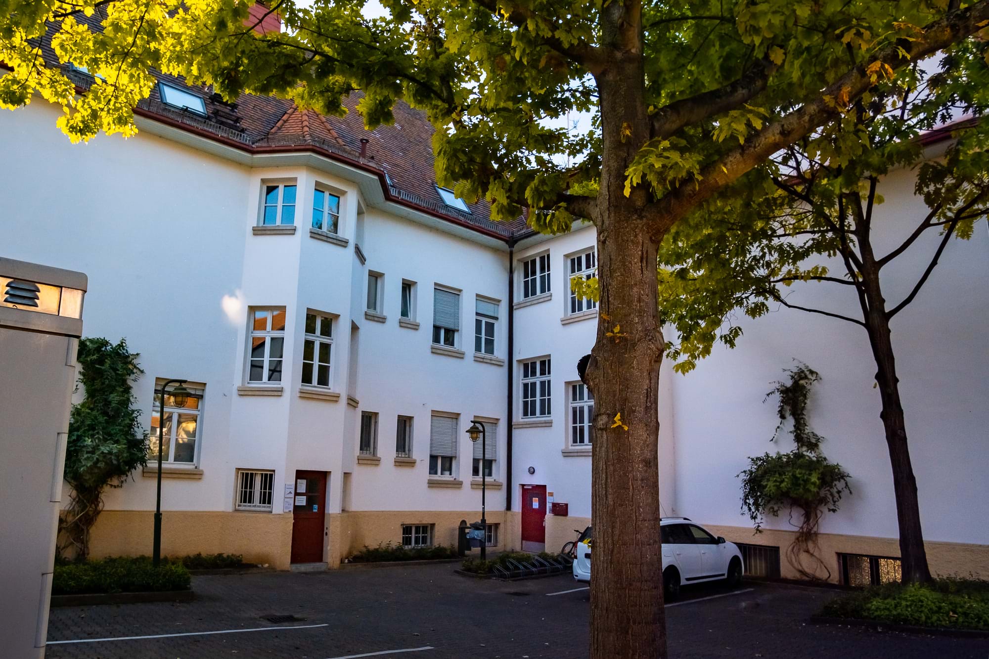 Alte Schule, hinterer Eingang (rote Tür), 1. Stock